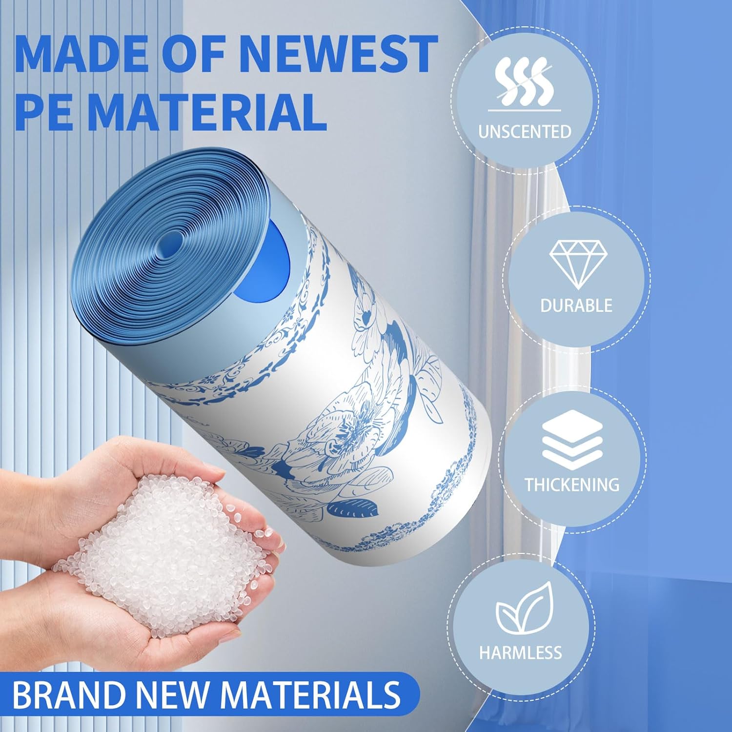 - Unscented and Leak-Proof :Small garbage bags are made of pure HDPE material that do not have any bad odors and are not harmful to your health or the climate