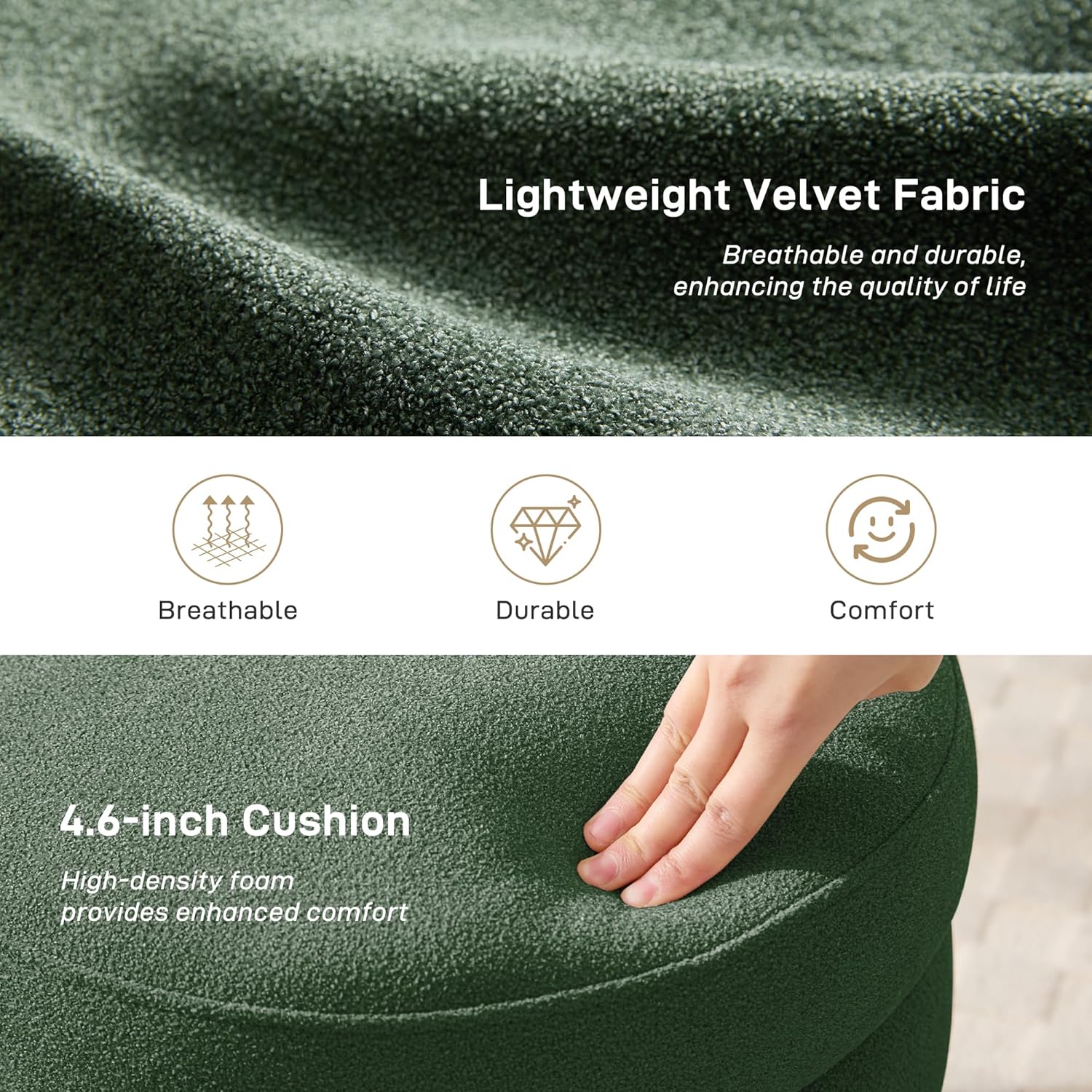 Round Ottoman with Storage Boucle Ottoman Stool Removable Lid for Living Room Modern Upholstered Vanity Storage Stool Foot Rest Bedroom Dorm Gifts Set of 2 (Green)