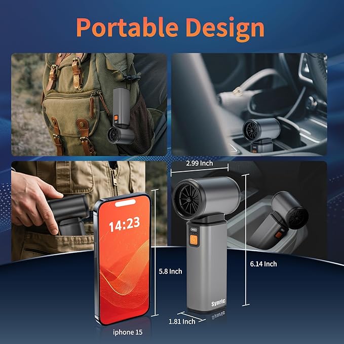 - 【Rapid Charging & Eco-Friendly Power】Synric Cordless Air Duster fully recharges in 2.5 hours via universal Type-C port, delivering 15 minutes of hurricane-force airflow or 4 hours of gentle breezy wind. Compatible with power bank, the batteries’ built-in overcharge protection ensures long-term battery health, outperforming compressed air cans with zero waste and 300+ reuse cycles