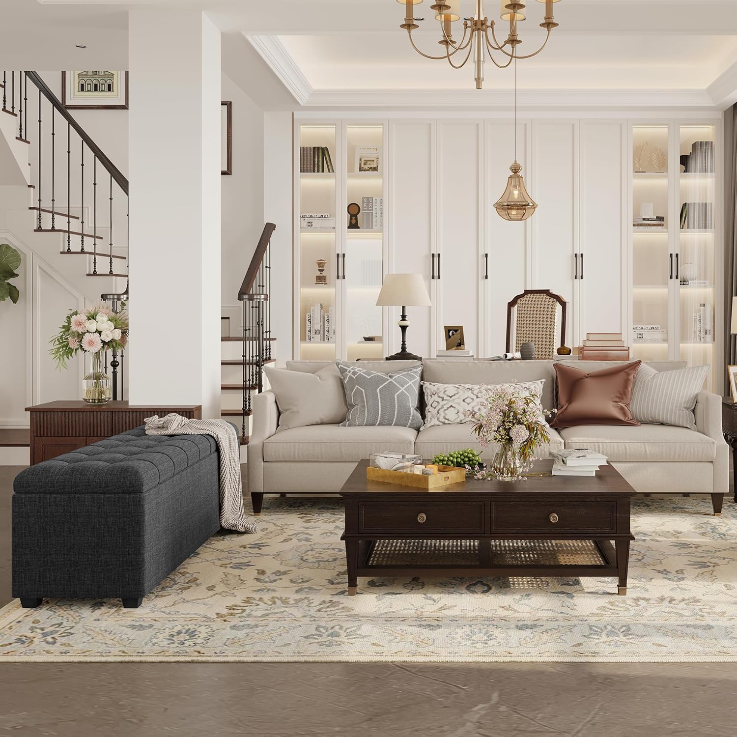 Ottoman with Storage 38 inches, Furniture End of Bed Storage Benches, Long Ottomans Bench with hinged lid, Bench seat Trunk for Foot Rest in Bedroom, Living Room (Dark Grey)