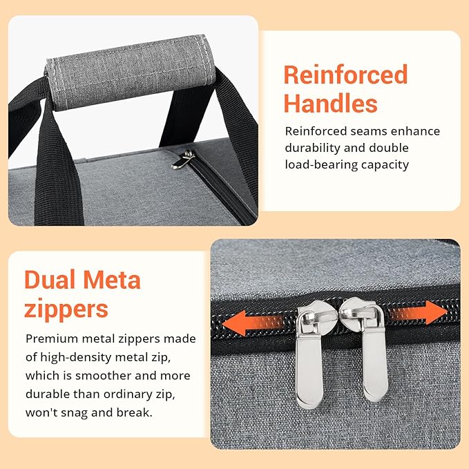 - 【User-Friendly and Portable】Featuring a wide zipper opening, this portable carry pie and casserole holder makes loading and unloading your food effortless. Two sturdy handles with padded Velcro closures provide a comfortable grip, so you can carry your meals with ease and confidence.
