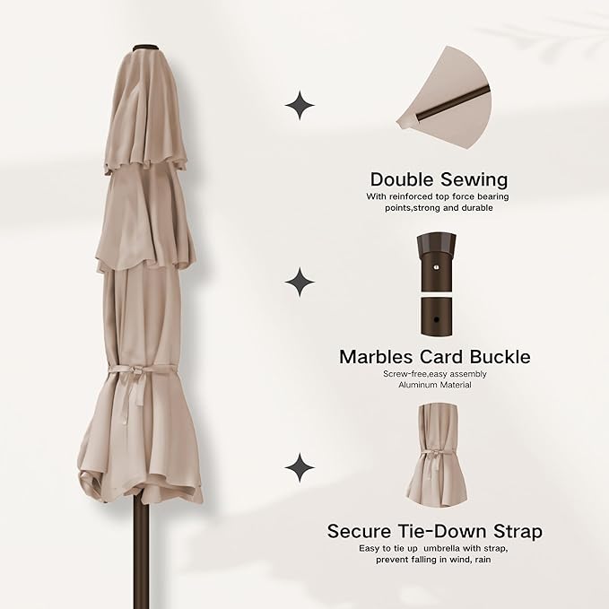 - 【3-Tier Vented Top】Our innovative 3-tier vented canopy is engineered to withstand the winds, preventing the umbrella from tipping over or inverting. Relax and enjoy your outdoor space without worrying about sudden gusts.