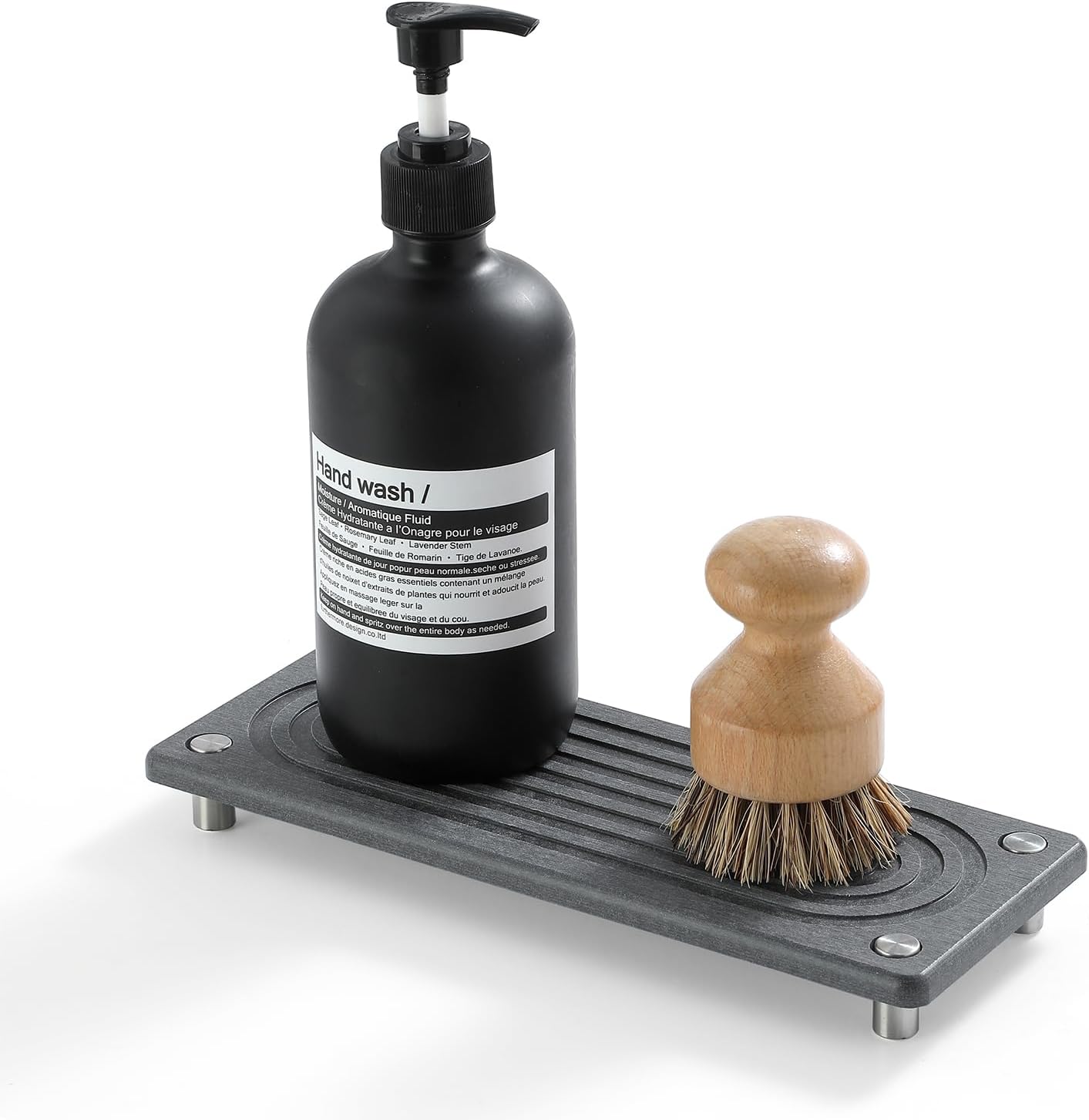 - 【Multifunctional Water Absorbing Stone Tray for Sink】 Using this tray for your soaps and brushes in the bathroom, or by the kitchen sink. The fast drying sink caddy provides you with a neat and orderly space for your home.