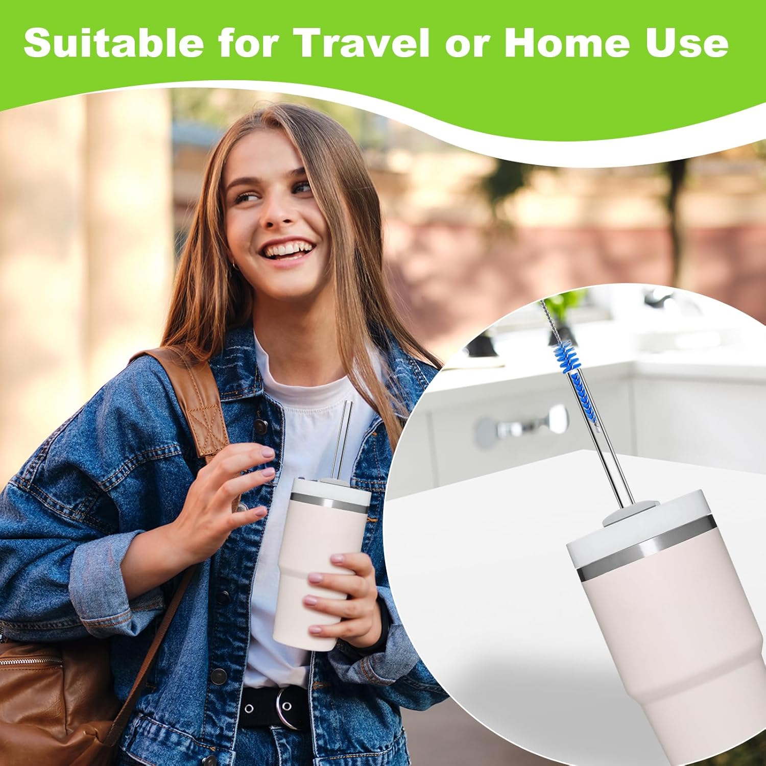 Straw Cleaner Brush for Stanley, 12 Inch Extra Long Straw Brush Cleaner (8-Pack) Includes 2 Reusable Glass Straws for 40 oz Tumbler and Water Bottle, Durable & Rust Resistant