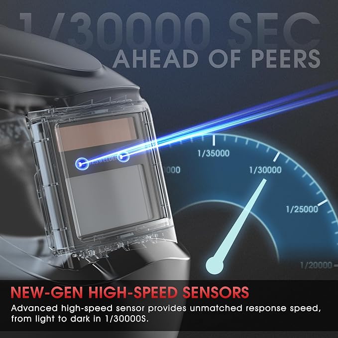 - Fast Auto-darkening: 2 premium arc sensors trigger darkness in 1/30000 sec. Features adjustable sensitivity and delay controls for optimal performance in any lighting/arc condition