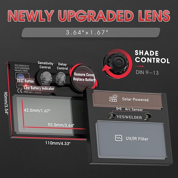 - Multi-Application: Wide shade range 3.5/9-13, covering most common welding processes, ideal for TIG, MIG, MMA (Stick), and GRIND. Easily accommodates magnifying lenses for close-up work