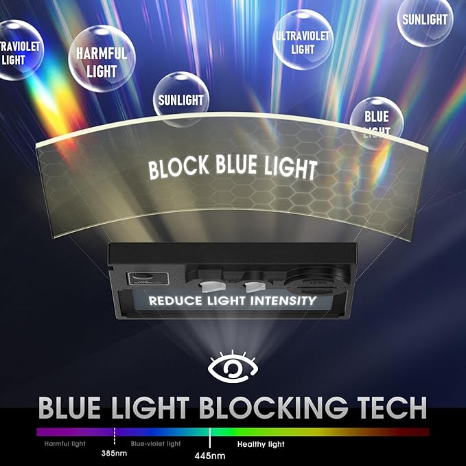 - Advanced Eye Protection with Blue Light Blocking Technology: This welding helmet features cutting-edge Blue Light Blocking outer lens, shielding your eyes from harmful blue light during welding, protects your eyes by filtering out most of harmful high energy blue light rays while letting through the less harmful portion of the blue light spectrum. This ensures long-lasting eye comfort and safety, making it ideal for extended welding sessions