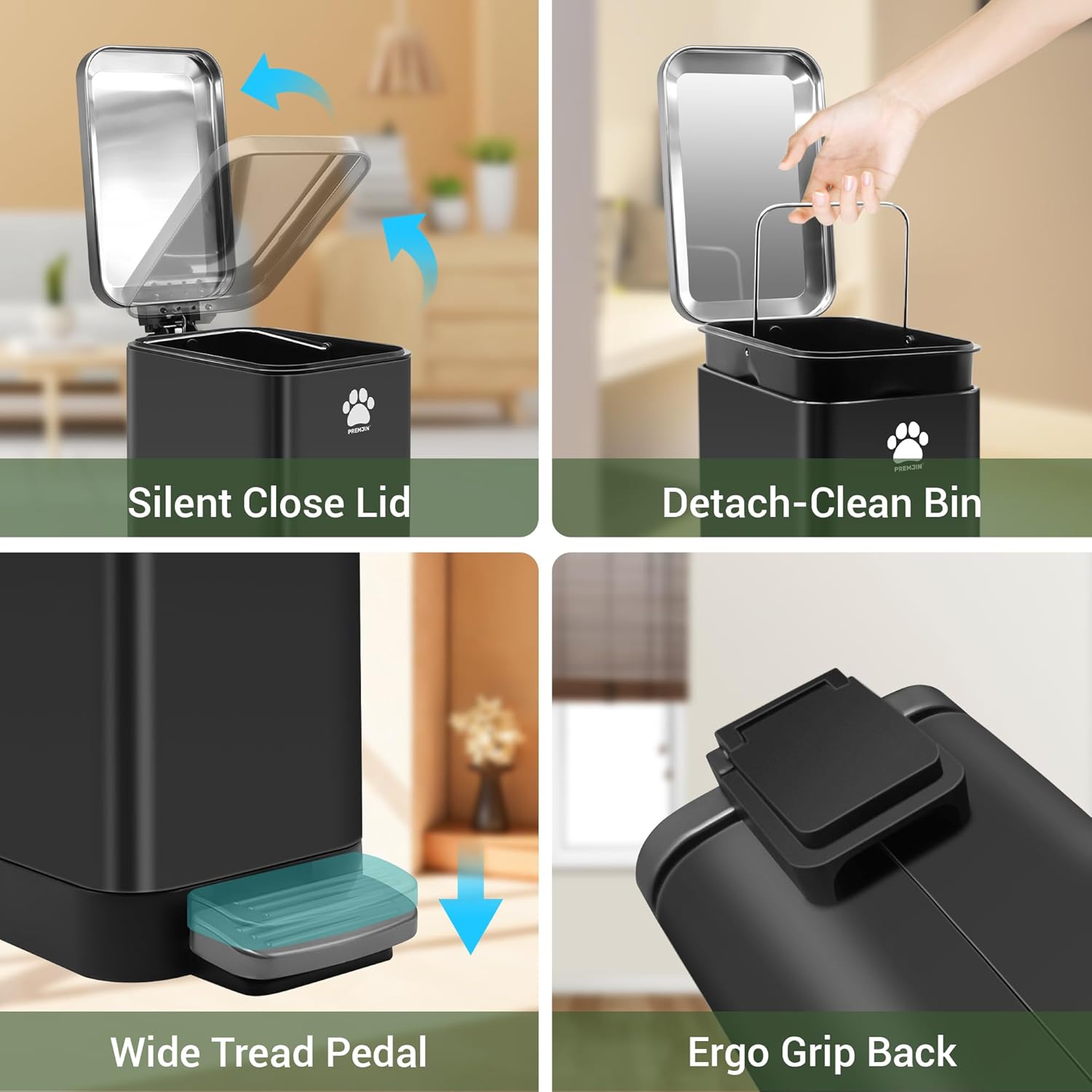 - Premium Stainless Steel Construction: PREMJIN Outdoor trash can built to last with rust-resistant stainless steel housing and odor-sealing lid. The step-open dog waste trash can features a weighted base for stability and protection coating to withstand sun/rain. Removable inner dog trash can bucket with carrying handle makes disposal hygienic. Perfect solution for patios, gardens, and backyard dog stations.