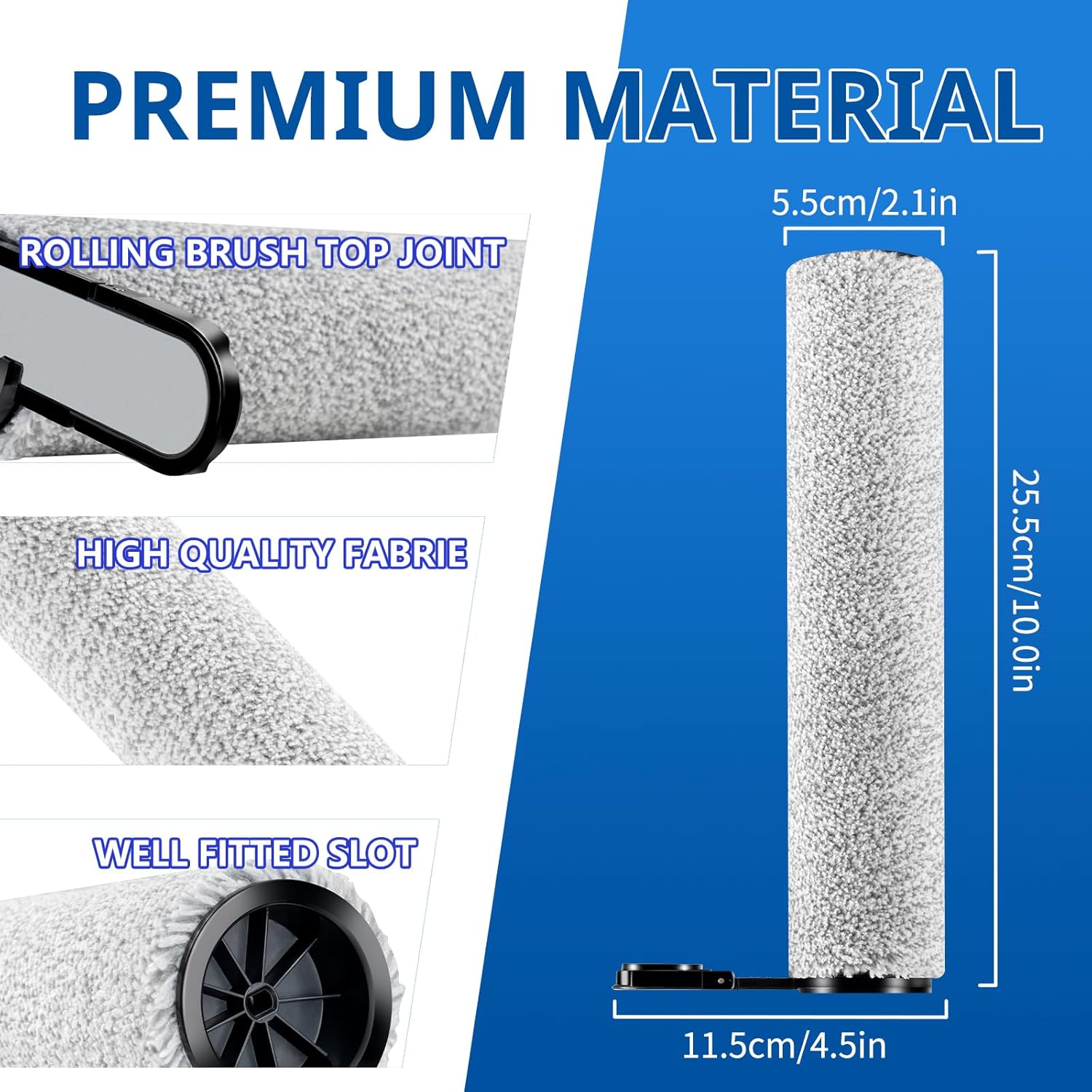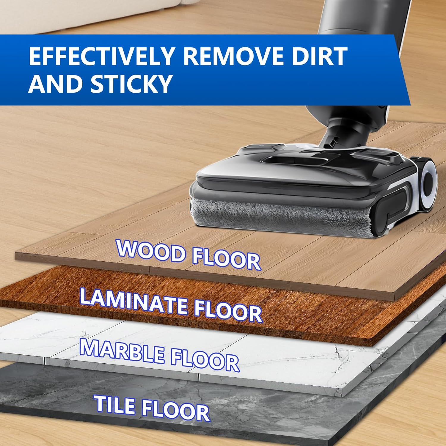 - Exceptional Cleaning Performance: The brush rollers feature a flat cylindrical design that delivers gentle yet thorough cleaning on all hard surfaces: laminate, linoleum, sealed wood floors, marble, and tiles. Built with self-cleaning functionality, they automatically shed debris after each use, reducing manual cleanup. The high-density microfiber soft flannelette material offers superior water absorption for effective vacuuming and mopping in one step, tackling stubborn stains, pet hair, dirt, and dust without leaving residue.
