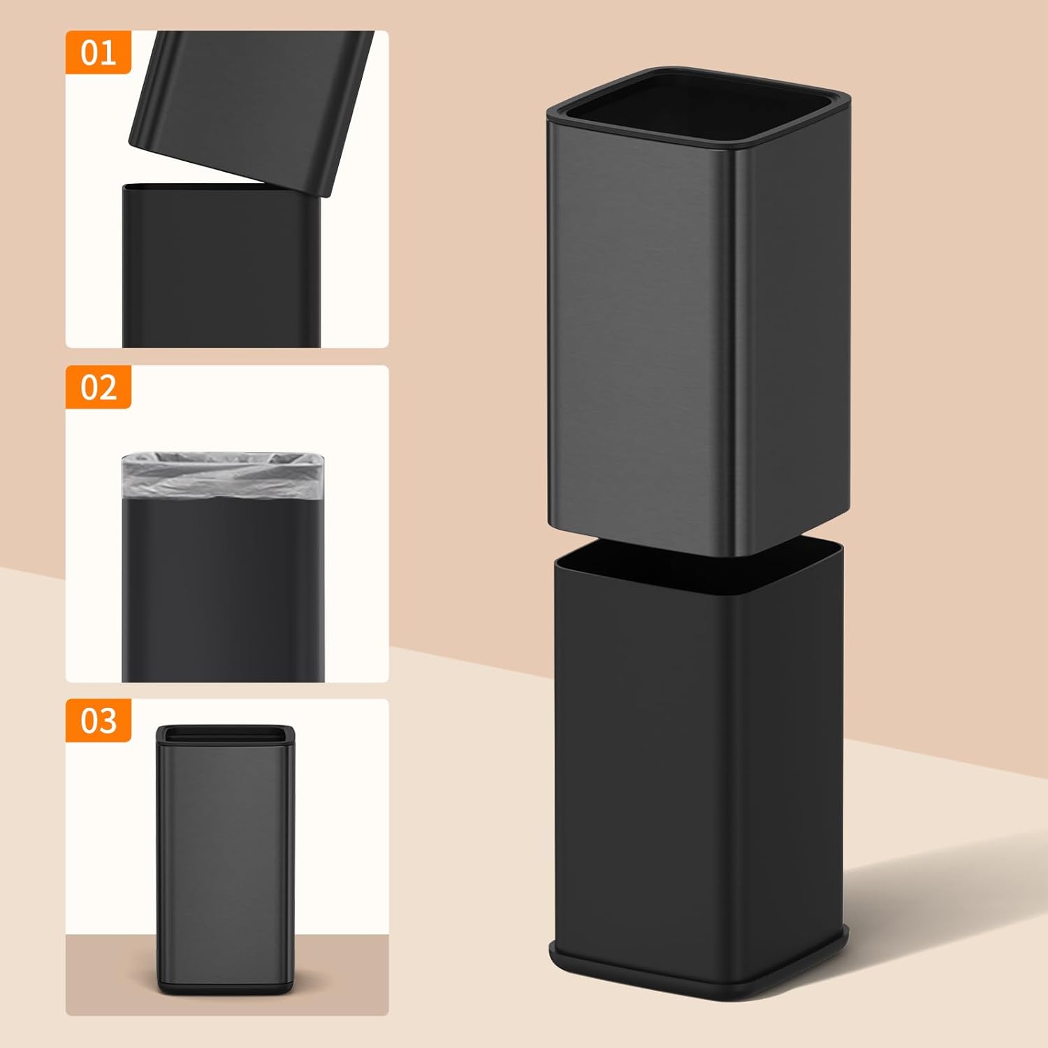 - Efficient 9L (2.4 Gallon) capacity WASTE BASKET, perfect for small OFFICE spaces or BATHROOM use, ensuring a clutter-free environment.