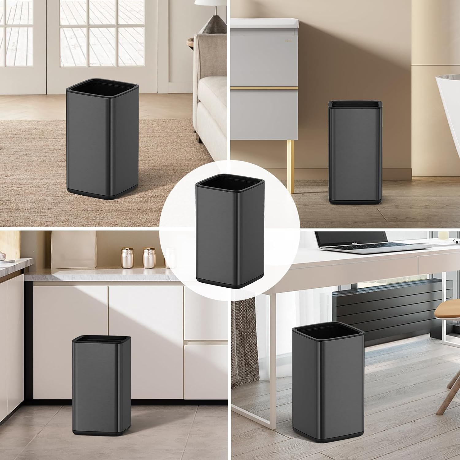 - QUICK & EASY DISPOSAL β Open Top design is perfect for busy homes, restaurants, restrooms, offices, lobbies, stores β quick & easy trash disposal.