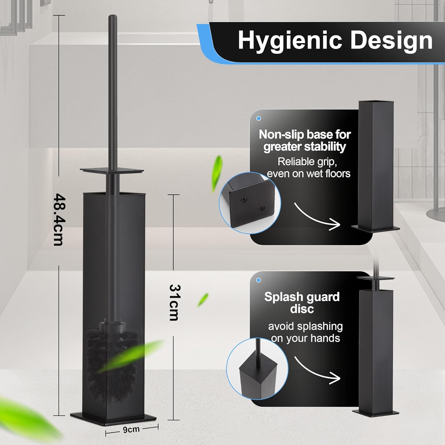 BVL Toilet Brush and Holder Set Black Stainless Steel 304 Square Freestanding Toilet Brush for Bathroom