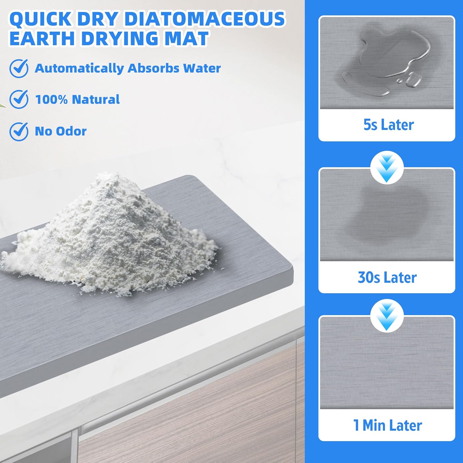 - [60S Quick-Drying Sink Sponge Holder]: The bottom is made of natural diatomaceous earth moisture-absorbing mat, which quickly absorbs water and dries in 60 seconds, saying goodbye to the trouble of sponge water accumulation. Maintenance-free, no need to pour water manually, no need for frequent cleaning, keep the kitchen countertop dry and tidy at all times, and easily double the housework efficiency.