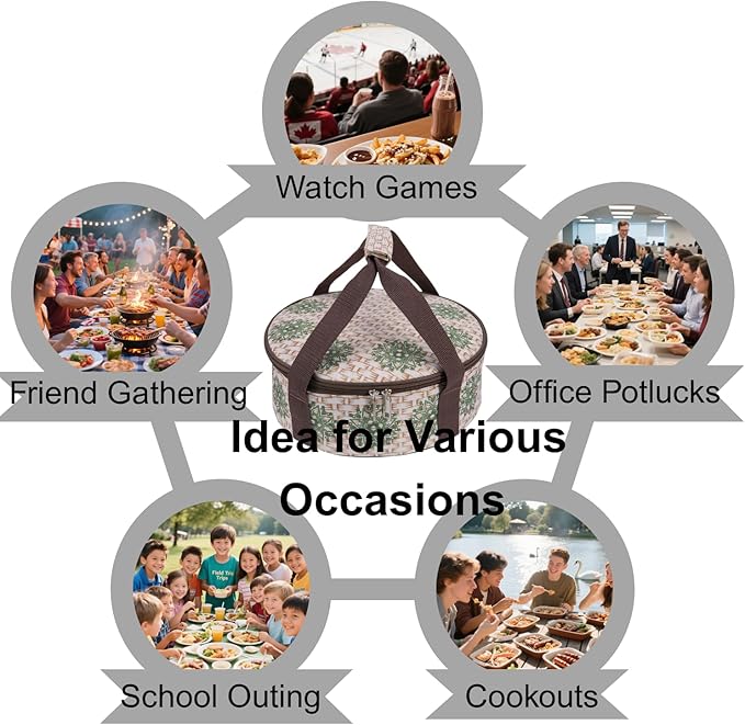 - 【Durable Fixing Straps Design 】 Featuring afixing straps and sturdy construction, this round casserole carrier prevents spills, making it ideal for transporting soups, sauces, and other liquids without worry