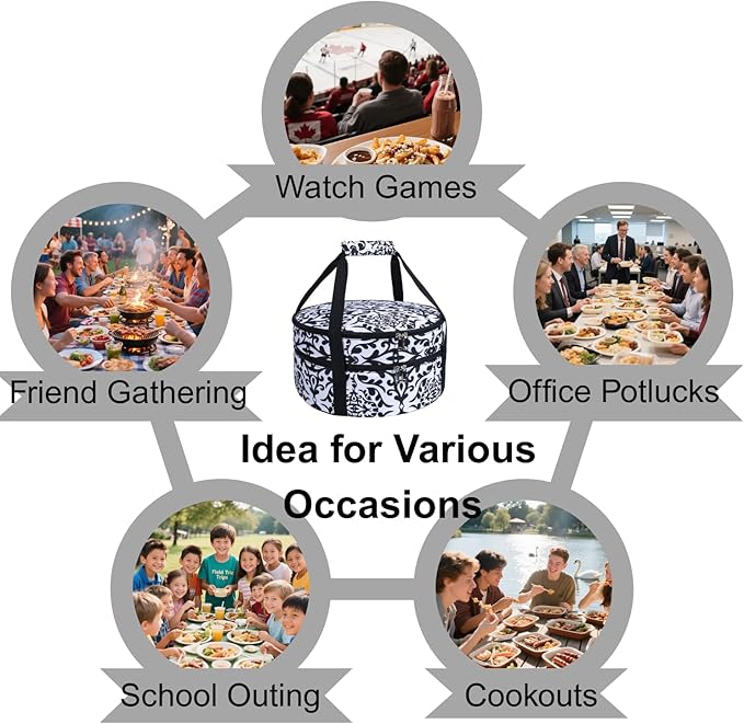 - 【Durable Fixing Straps Design 】 Featuring afixing straps and sturdy construction, this round casserole carrier prevents spills, making it ideal for transporting soups, sauces, and other liquids without worry