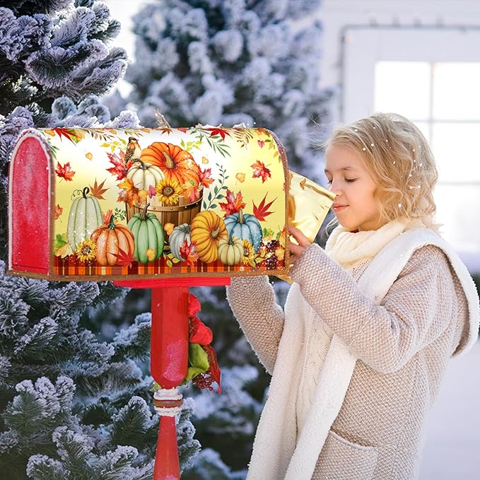 - 【Large Size】Designed to fit standard mailboxes, this fall pumpkins maple leaves floral decorative letter box cover measures 25.5x21 inches. The magnetic backing ensures a secure and easy installation, making it a perfect fit for most mailboxes without any hassle