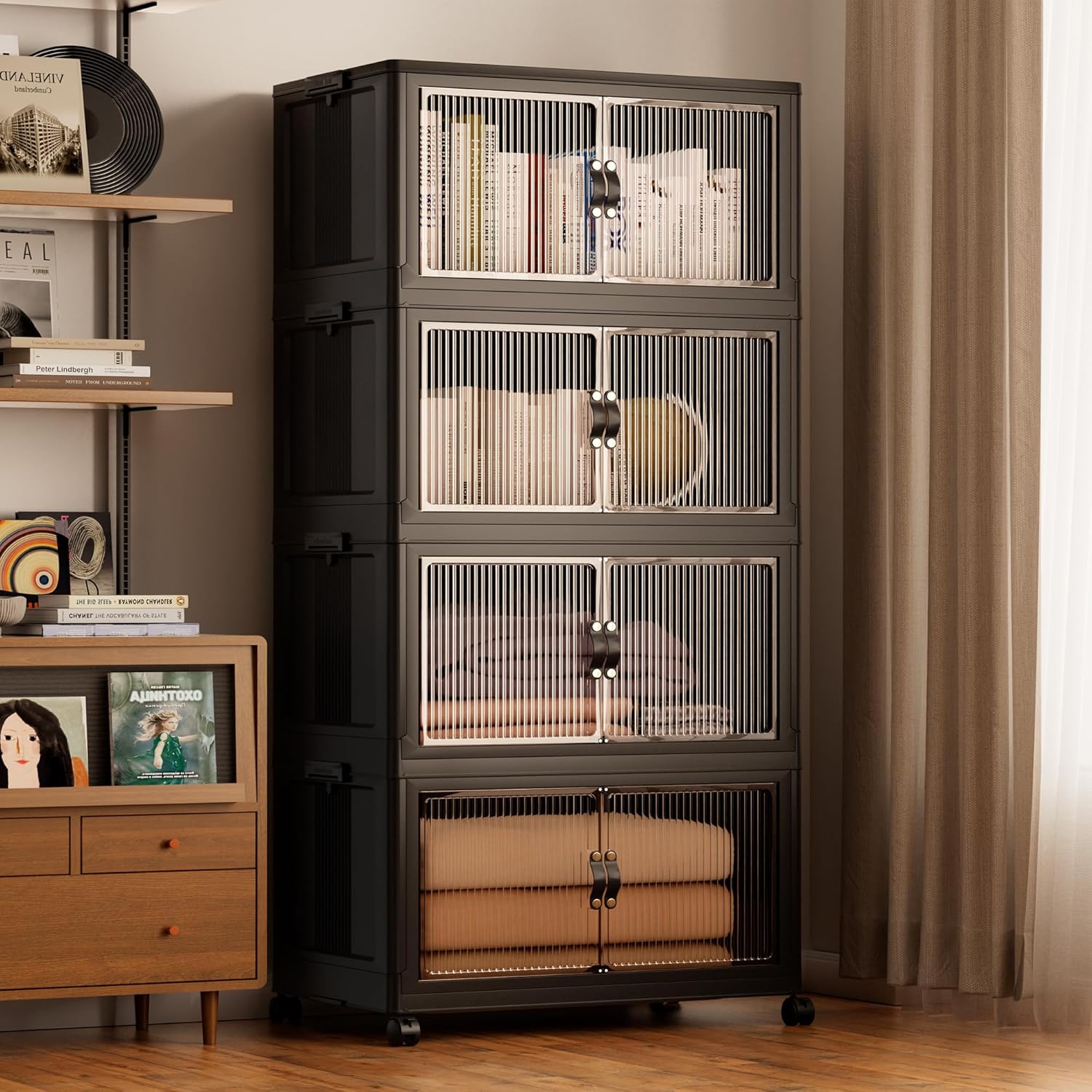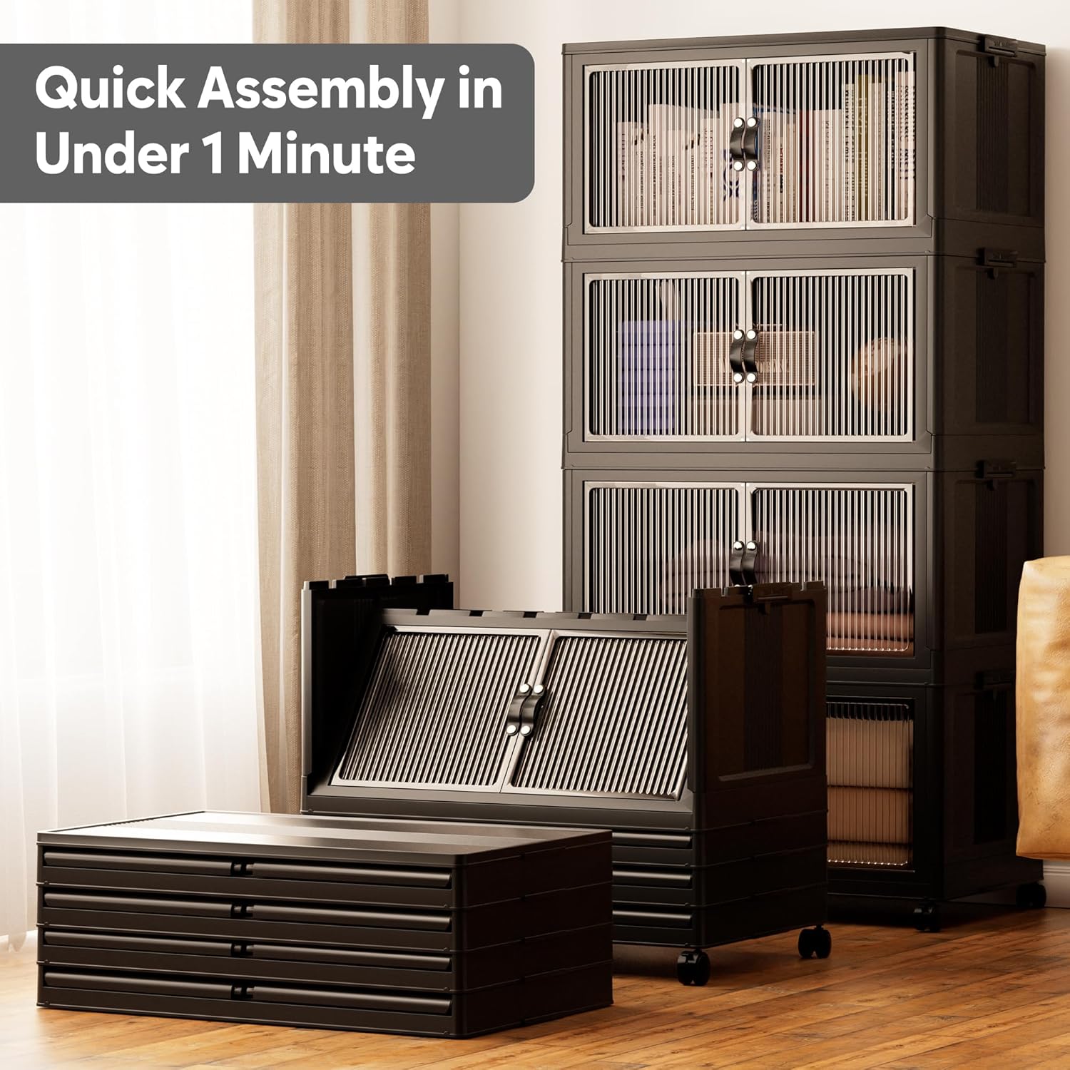 - 【High Quality & Safety】Made with high-impact polypropylene (PP), these bins ensure durability and protection for your belongings. The ABS front panel adds clarity and strength. They can also be used as a plastic storage cabinet with doors, offering more convenience for organizing items.