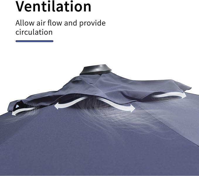 - All-aluminum umbrella bones and 8 heavy-duty ribs, anti-oxidation spray painted, maintain a long period life