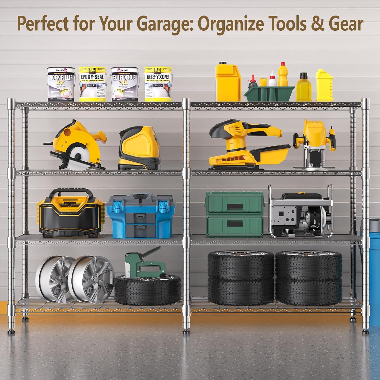 Himimi 4-Tier Adjustable Metal Shelving - 1600LBS Capacity, Heavy Duty Wire Organizer for Pantry, Kitchen, Garage, Laundry, 72" W x 18" D x 60" H, Silver