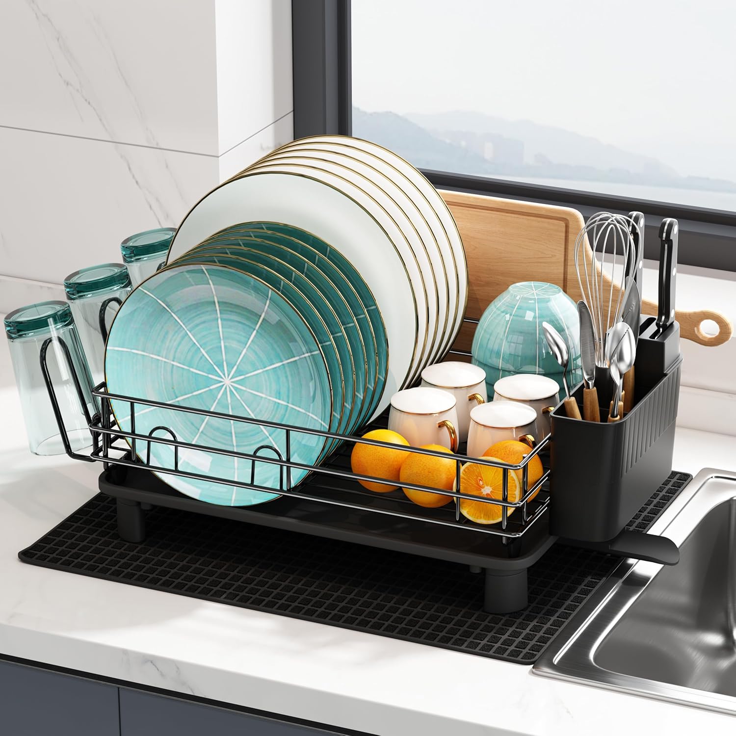 - Modern Black Dish Dryer Rack: Smudge-resistant black dish drying rack blends seamlessly. Easy-wipe finish stays clean—no stains, no scrubbing