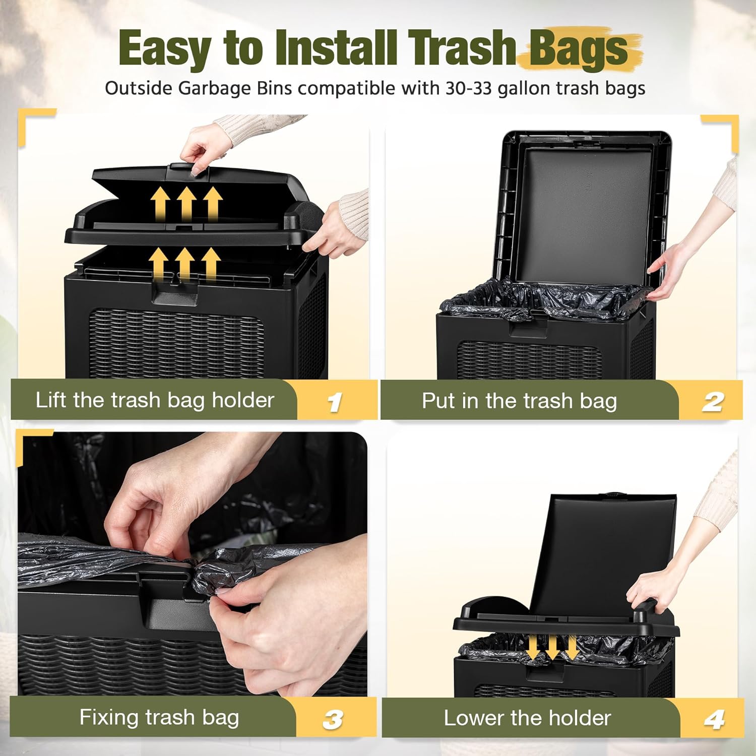 - Various Outdoor Scenarios: Our outdoor trash cans are perfect for use on patios, pools, poolside, porches, gardens, backyards and more