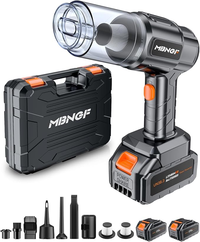 - 【Portable and Cordless Design】 The portable and cordless design of the MBNGF X9 ULTRA car vacuum makes it easy to maneuver and use anywhere. It provides convenience and efficiency in cleaning your car, home, or office.