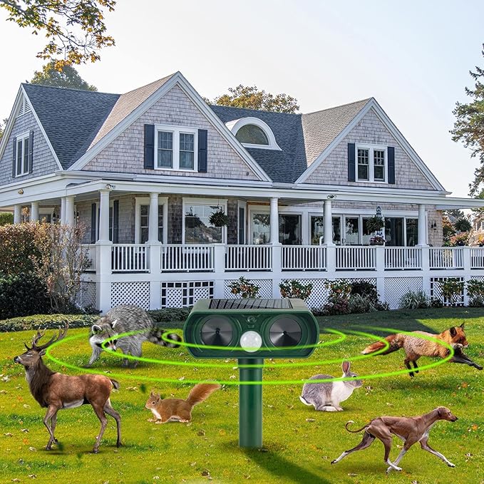 - 🌱DESIGN OF MOTION SENSOR---Once the Advanced Motion Sensor detects animals nearby, the cat repellent outdoor activates, emitting strong ultrasonic sounds and flashing LED strobe lights which makes animals uncomfortable. Great for Repelling Deer, Rabbits, Gophers, Voles, Moles, Groundhogs, Chipmunks, Racoons, Squirrels, Stray dogs,cats.