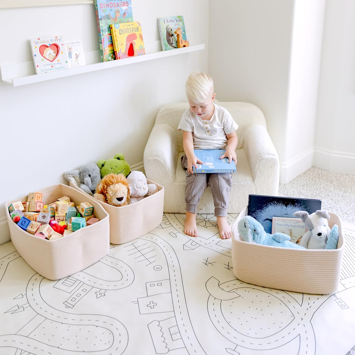 - Safe, Natural Cotton Organizer Bins: Crafted from the highest quality material in the market, our hamper are oh-so-sturdy (and cute) and ready to take on little humans. They’re 100% safe, so you can rest easy if teething toddlers take a nibble.
