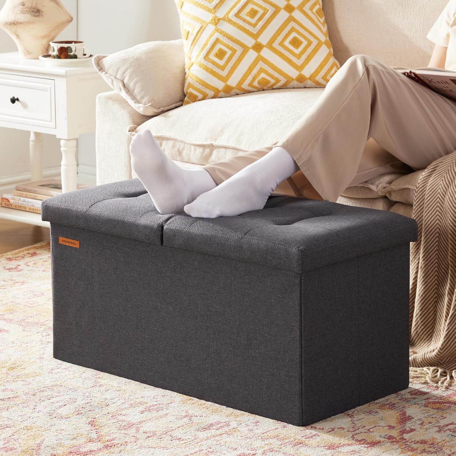 HAUSFRAU - 30 Inches Storage Ottoman Bench with Flipping Lid, Foldable Storage Chest Foot Rest for Living Room, Bedroom, Entryway, Load 660 lb, Linen Dark Gray