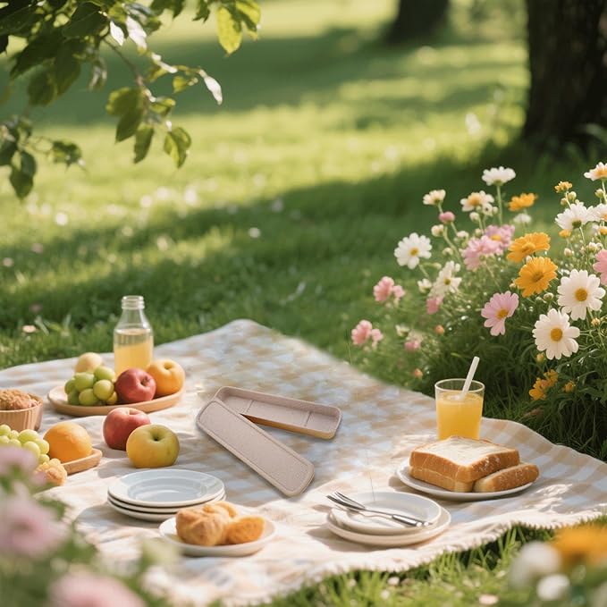 - 【Reliable materials】: Made of natural organic biodegradable wheat straw fiber, safe and sanitary. odorless, lightweight, with smooth edges and can be opened and closed easily. The portable travel cutlery storage box is not easy to yellow, easy to clean, and can be used for a long time.
