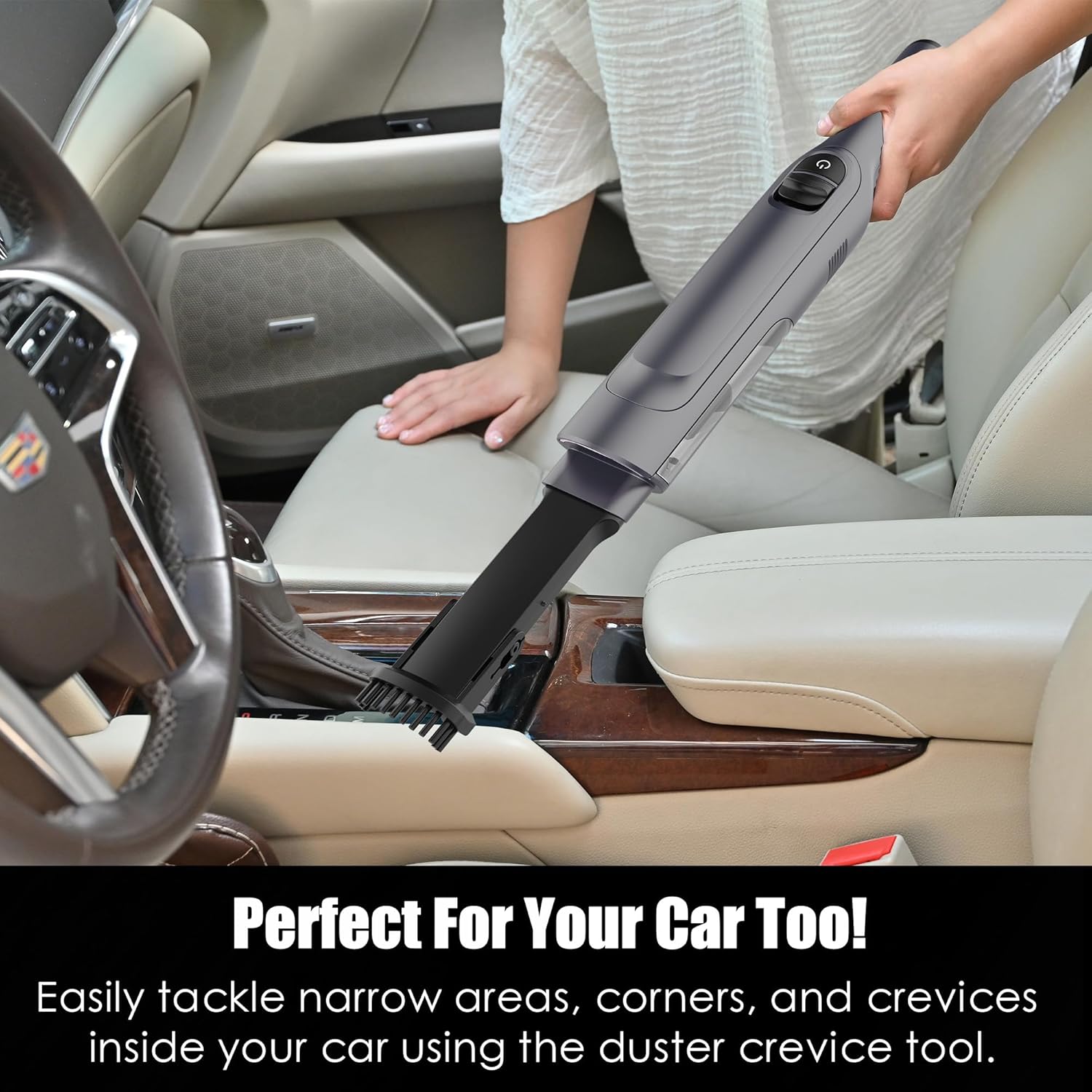 - ăLasting Power & Fast ChargingăFeaturing a high-capacity 2600mAh lithium battery and an optimized circuit system, our handheld vacuum provides uninterrupted cleaning power for up to 30 minutes on eco mode, effectively handling various cleaning situations, including car interiors.