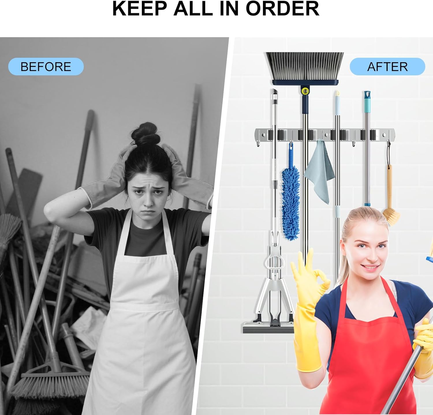 - VERSATILE DESIGN: You can easily organize your home, such as laundry room, kitchen, garage, storage room. This garage organization is also suitable for garden or shed. You can easily use broom, mop, vacuum, dustpan, rake, shovel, etc. Will keep your house clean and tidy