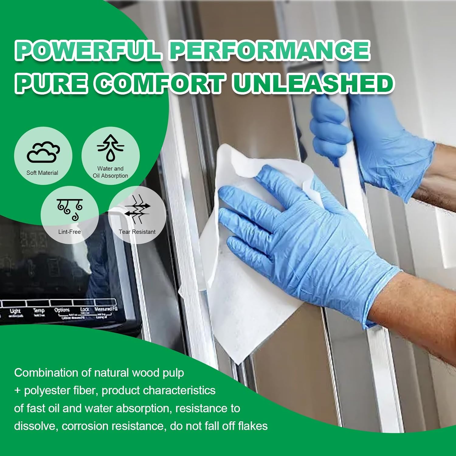 - Features:Nonwoven wipes have excellent absorbency, effectively absorbing water and oil, making them perfect for spill control. Ensures virtually streak-free cleaning with minimal lint or particles, ideal for precision cleaning of electronics and laboratory glassware.