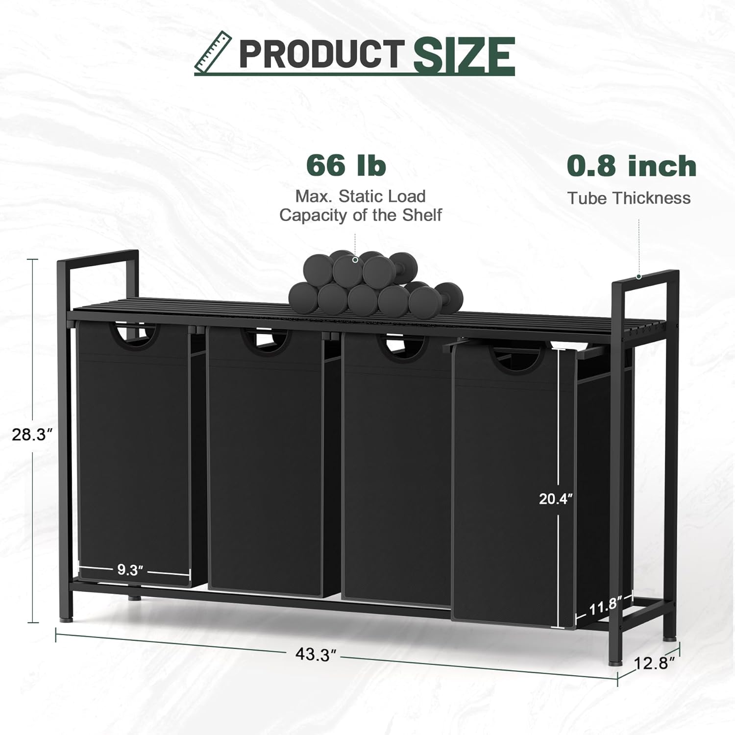 - Large Capacity - Featuring a 40 gallons capacity and an integrated open-shelf design, this laundry hamper helps you make the most of your storage space, easily accommodating both your clothes and accessories.