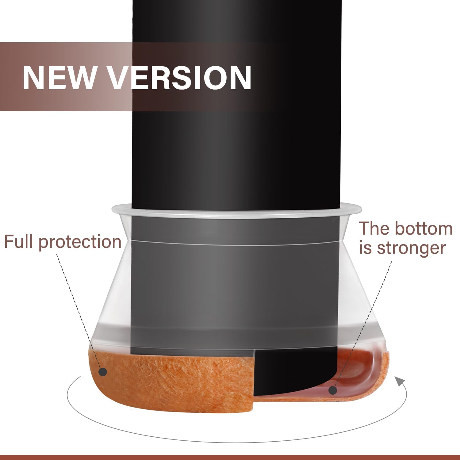 - [Reinforced bottom felt pad]-These chair leg protectors are designed for angled chair legs. The upgraded cup-shaped felt pad grips the chair legs securely. Even when the chair is tilted, it stays stable while protecting your floors from scratches and noise.