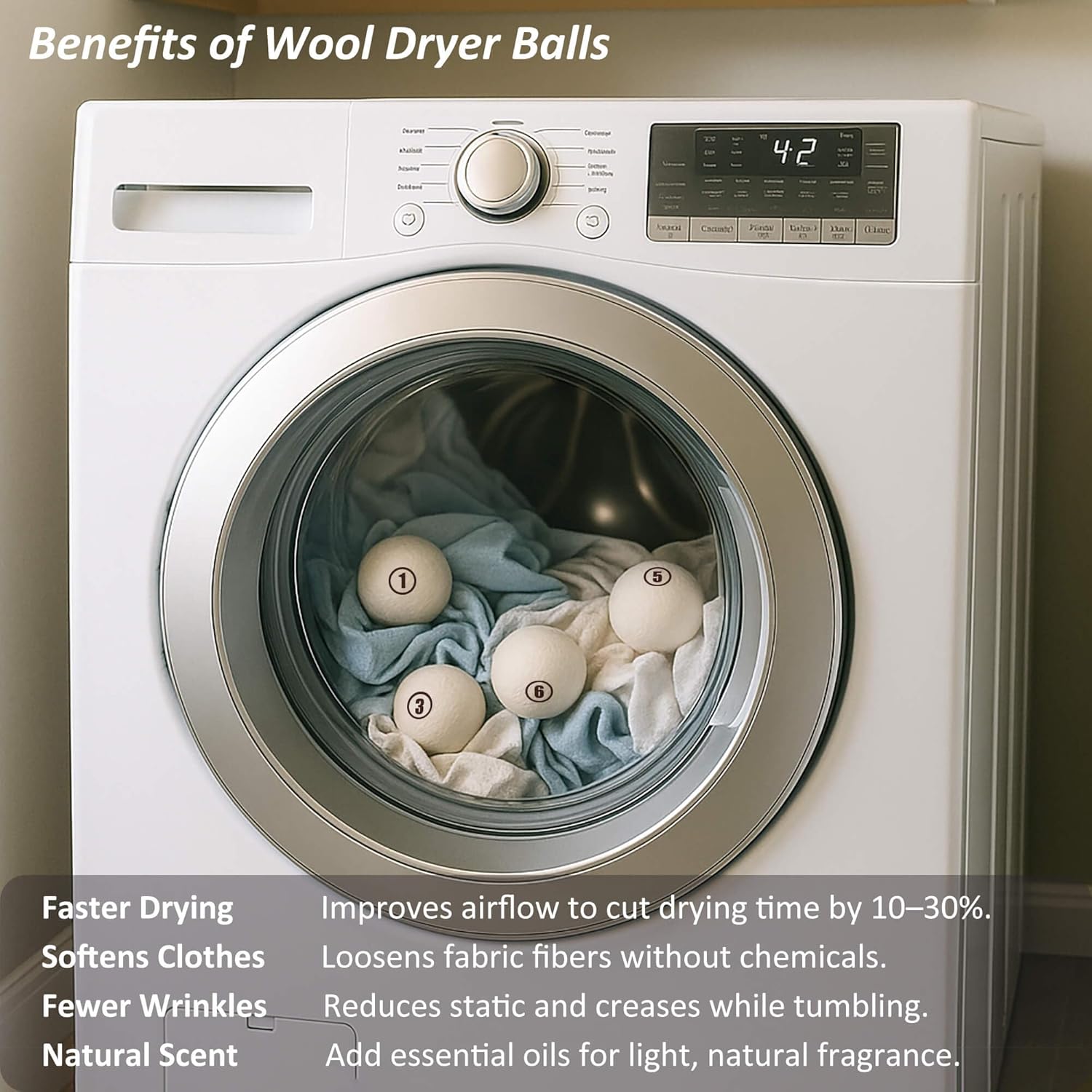 - ๐ Eco-Friendly & Chemical-Free โ Made from 100% natural New Zealand wool, our dryer balls replace toxic dryer sheets and liquid softeners. Safe for sensitive skin, babies, and petsโno synthetic fillers or harsh chemicals!