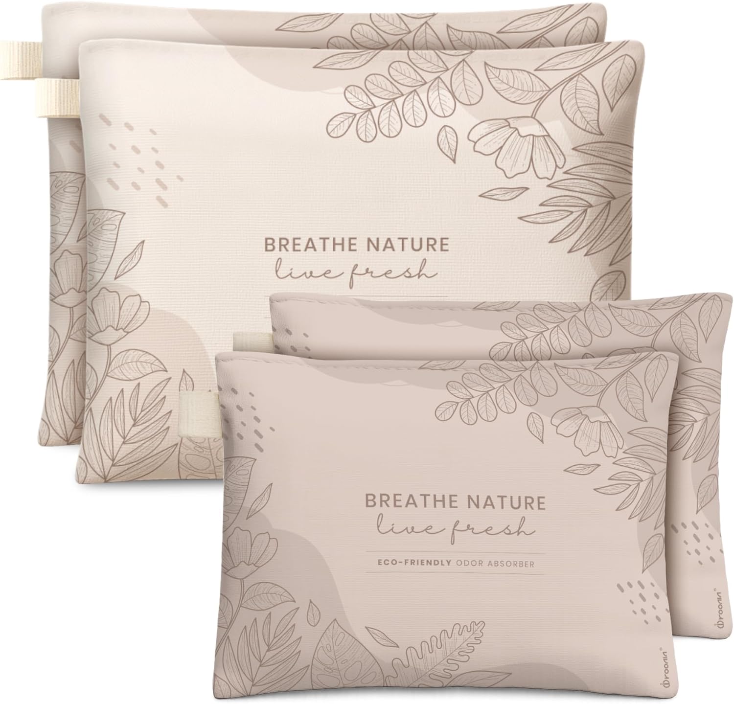 - NATURAL ODOR ABSORPTION TECHNOLOGY: – Harness the power of bamboo charcoal bags to naturally purify your living spaces. This advanced odor absorber targets moisture and bad smells at the source—perfect for closets, cars, bathrooms, shoe racks, cat litter boxes, cabinets, and even the basement.