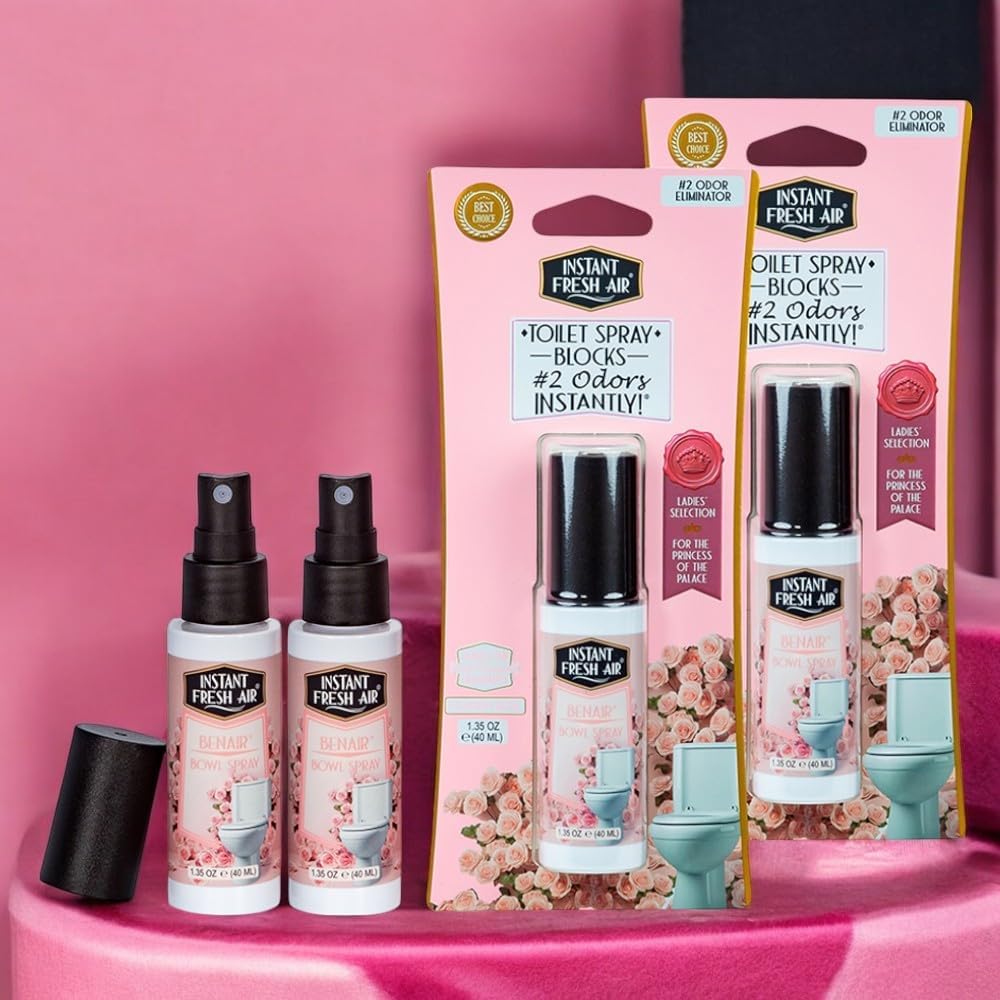2-Pack: Superior Toilet Spray for Women with Instant Odor Elimination, Powdery Rose Fragrance, Odor Eliminator Bathroom Spray, Travel Size, Long-Lasting, Eco-Friendly, 1.35 Oz. - INSTANT FRESH AIR