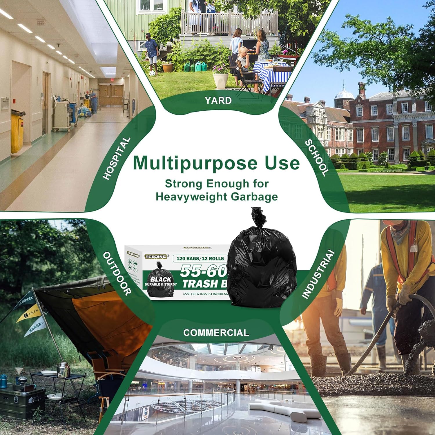 55-60 Gallon Black Trash Bags 120 Count - 40''x53'' Extra Large 50+ Gallon Garbage Bags,Unscented Strong Huge Can Liners for Construction Industrial Yard Outdoor Commercial