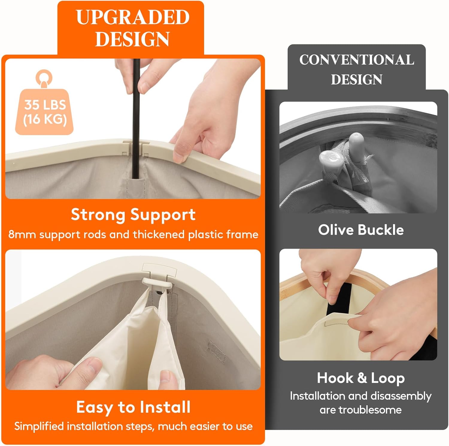 - Sturdy & Stable: Constructed from premium tear-resistant fabric, this hamper includes a plastic frame and four support rods for enhanced stability, supporting up to 16 kg/35 lbs without collapsing or deforming over time
