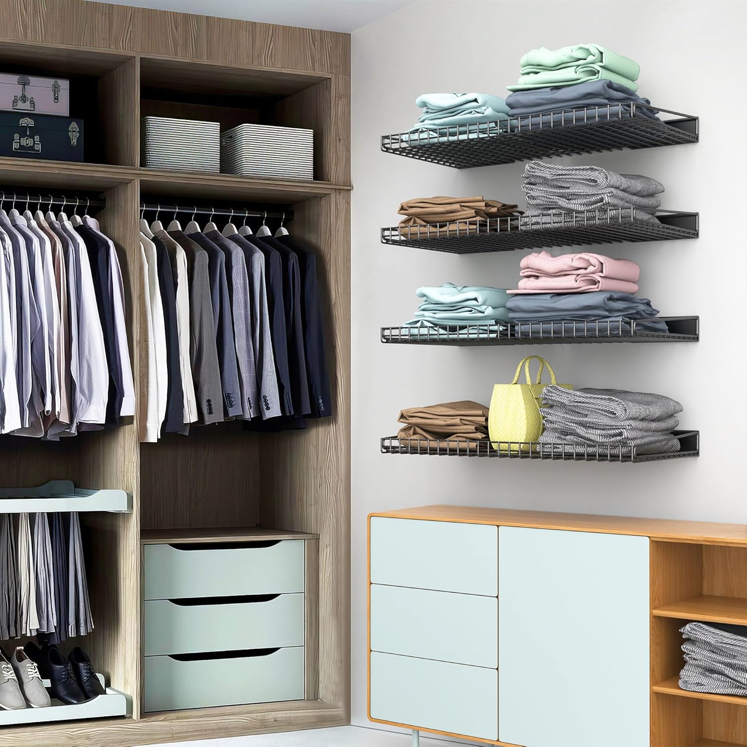 Ultrawall Wall Mounted Storage Shelf for Garage, 4 Pack Metal Shelf Rack, Heavy-Duty Wall Organizer Shelves Suitable for Shop, Shed, Garage 23.5inch x 12inch(Black)