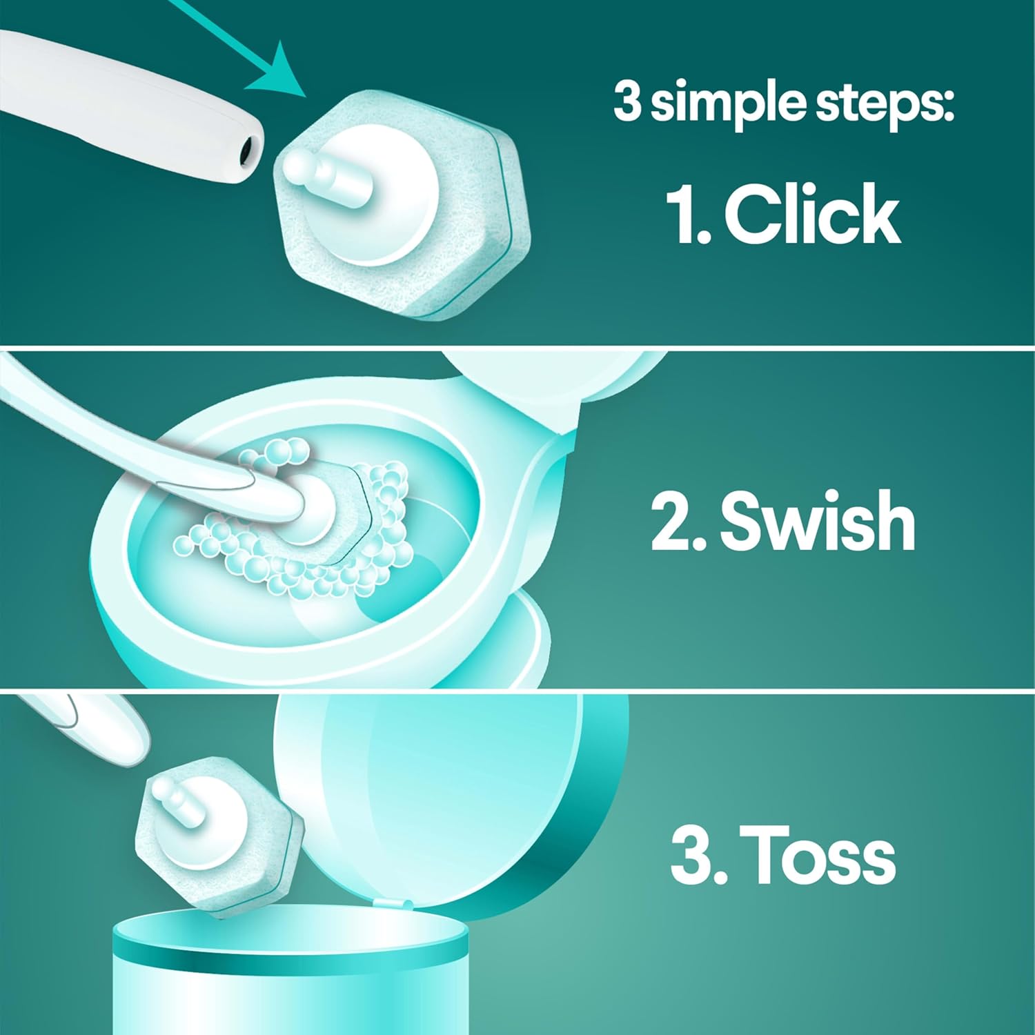 - DISPOSABLE SCRUBBING PADS: Never touch an icky toilet brush again with disposable scrubbing pads that conveniently pop off into the trash so you can toss the mess every time