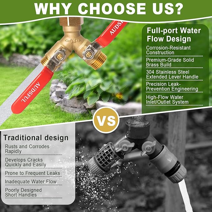 - 【Anti-Leakage Design】- Designed specifically to prevent leaks, each hose splitter undergoes a rigorous 2000 PSI pressure test before it leaves the factory - no leaks, no bursts, reliable performance, season after season