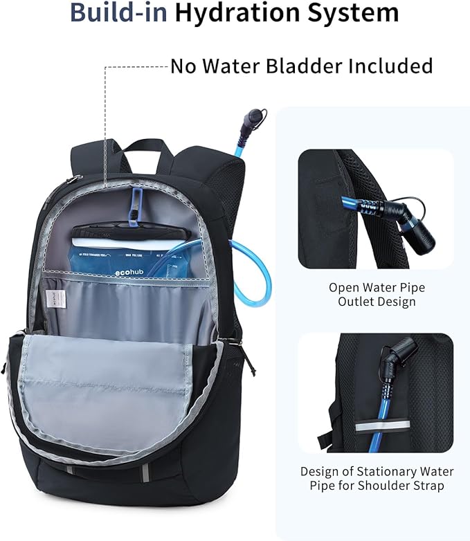 • 【Inner and Outer Connection Design】 Backpack has hooks inside the main compartment to hold the hydration bladder, and the straw exits from the right side exit of the backpack. Regarding this exit, you can also use it as a USB cable exit. This will better energize you or your electronic devices while in hiking , traveling, camping and so on(No Water Bladder Included)