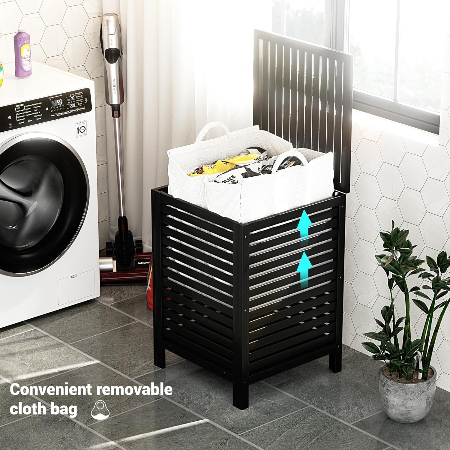 - REMOVEABLE LINER BAG - Stable bamboo construction will outlast loads of laundry, the divided liner bag is removable. When itโs time to do the laundry, just lift the lid and take out the inner bag, the bamboo laundry basket itself can stay where it is, as a decorative detail for any room. Removable liner bag with handles makes it easy to move this laundry basket from room to room. Please do not put the liner bag into the washing machine, it cannot be used as a laundry bag.