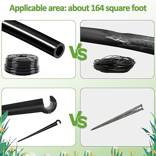 - NEW UPDATE: This micro drip irrigation kit comes with 164FT 200 pieces drip irrigation kit 1/4" empty water hose, you just need to turn on the faucet when you need it, you can water all the plants at once, suitable for lawn irrigation, patio, rooftop cooling, agriculture, vegetables, greenhouses, flower beds, swimming pool spraying and cooling irrigation and so on.