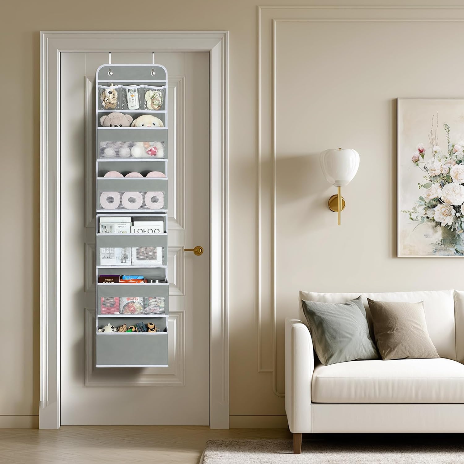 - Multi-Use Room Organizer: Ideal for maximizing storage in any space, this versatile closet door organizer works wonders in living rooms for remote controls or magazines, laundry rooms for detergents or fabric softeners, and kitchens for dishcloths or small utensils. It’s also great for entryways or closets, turning unused door space into practical storage to keep your home tidy.