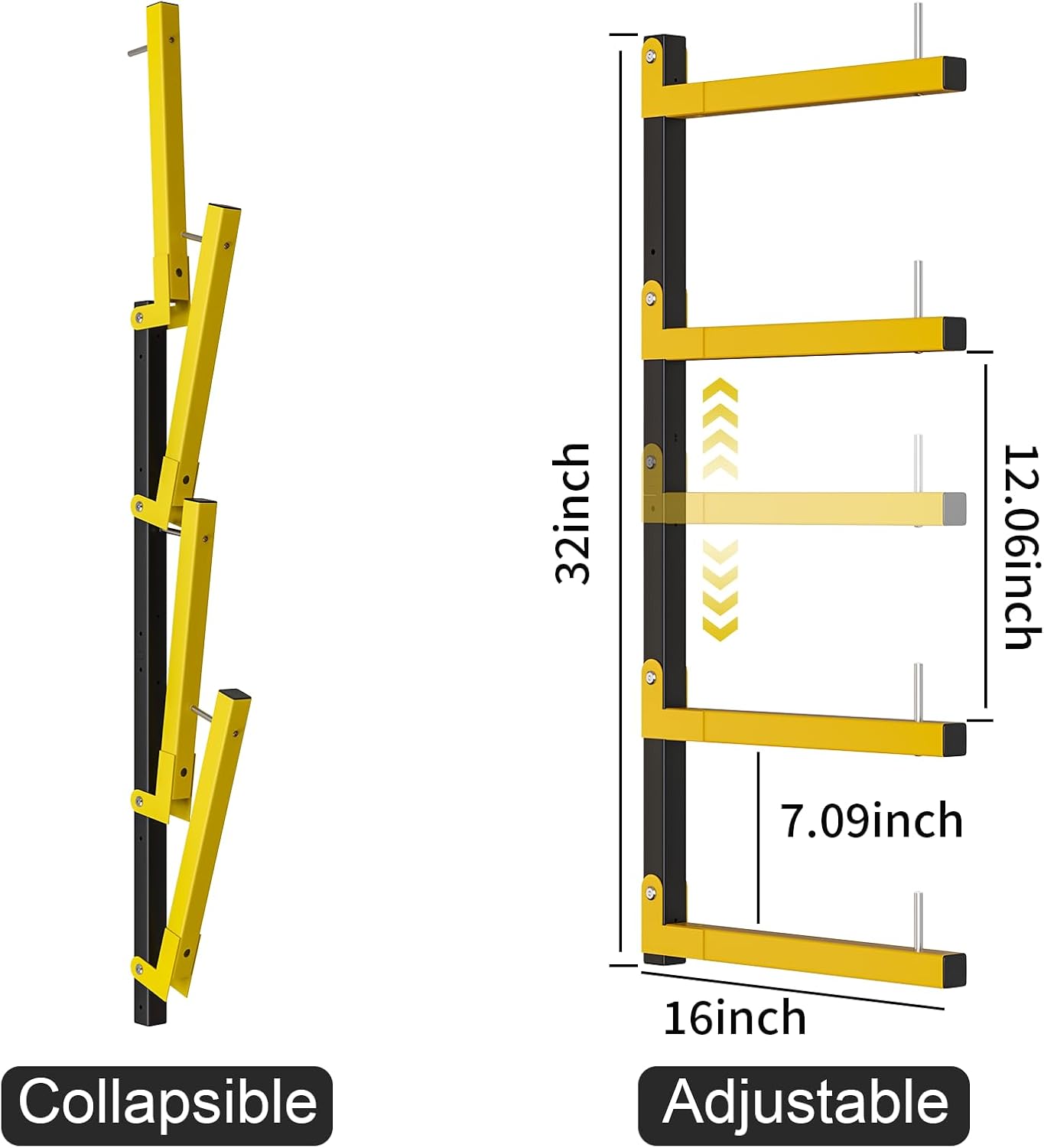 - FOLD FLAT WHEN NOT IN USE: The wood storage rack's foldable arms save space when not in use—ideal for small workshops or tight storage areas. Maximize floor space instantly!
