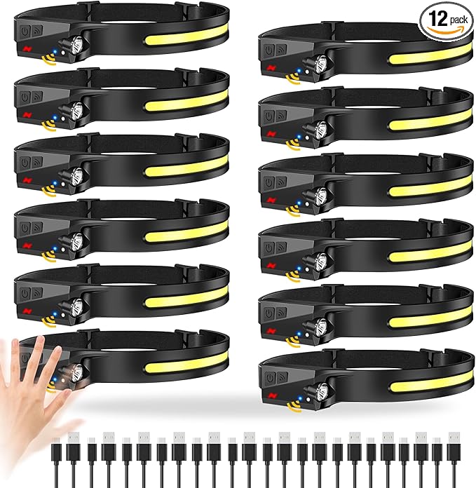 12pack Headlamp Rechargeable, 1000 Lumen Headlamps for Adults, 230 Angles Wide Beam Headlamp & Spotlight, Motion Sensor, 6 Modes, Lightweight Head Lamps for Camping Running Cycling (12)