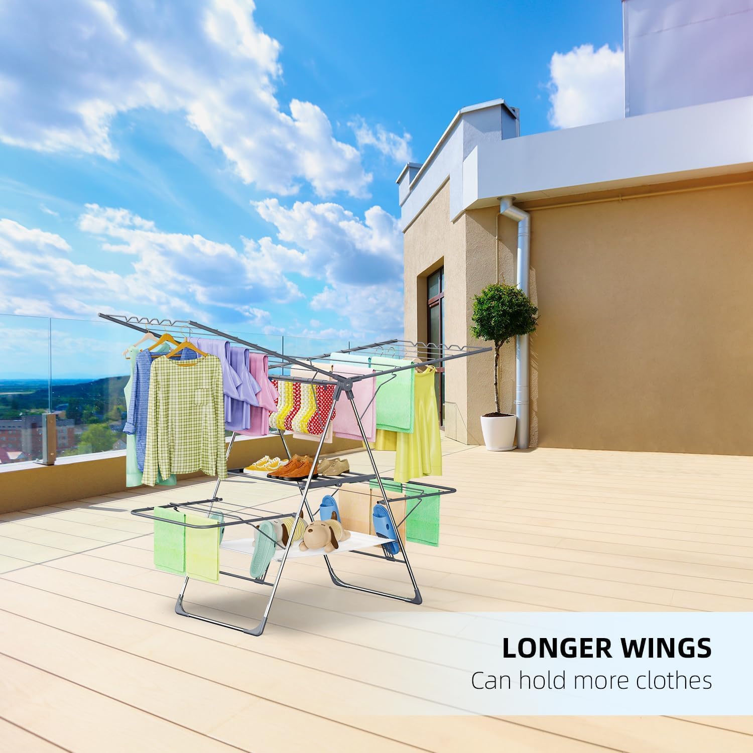 Clothes Drying Rack, Foldable 2-Level Laundry Racks for Drying Clothes Rack,Stainless Steel Drying Rack Clothing Collapsible for Indoor Outdoor,with Height-Adjustable Wings